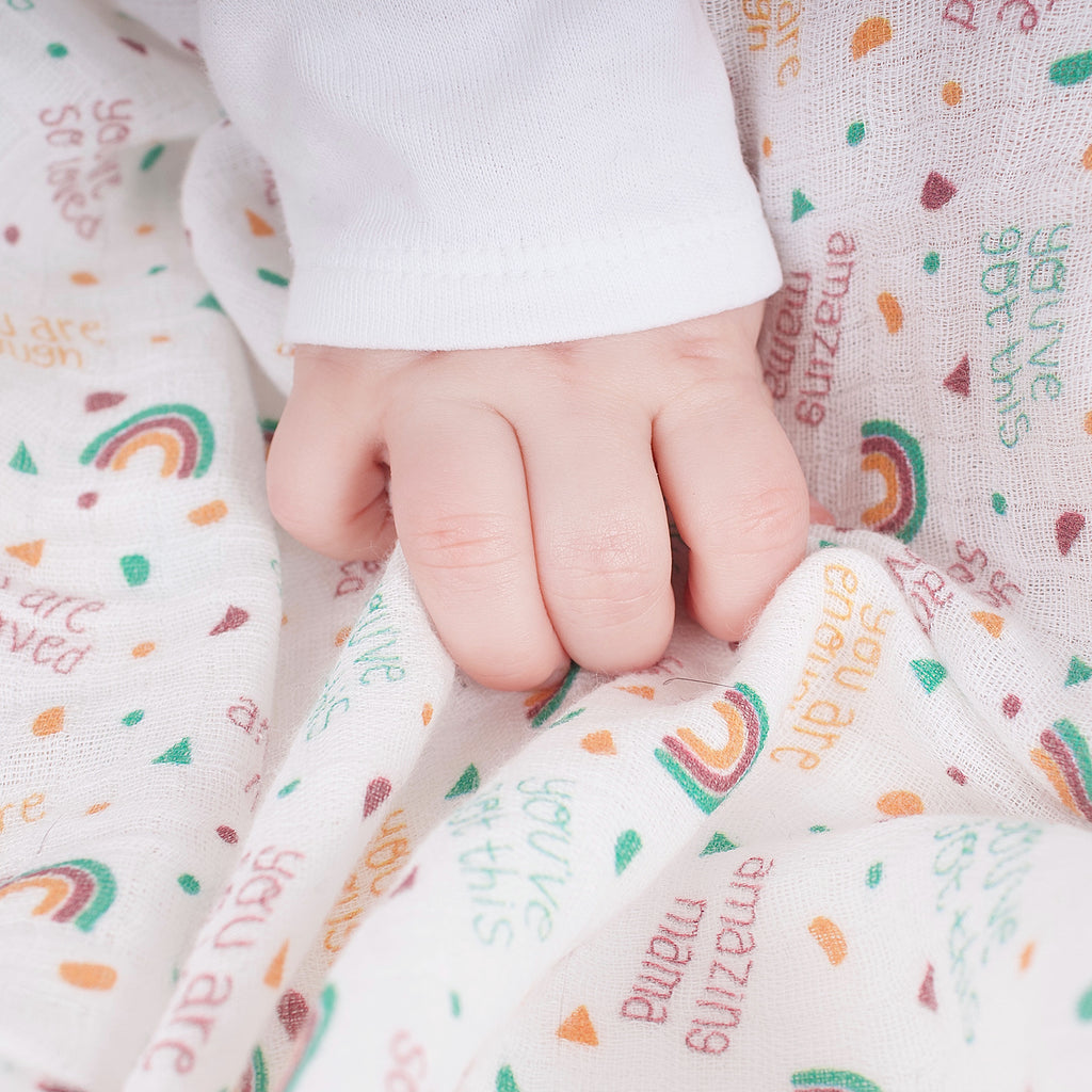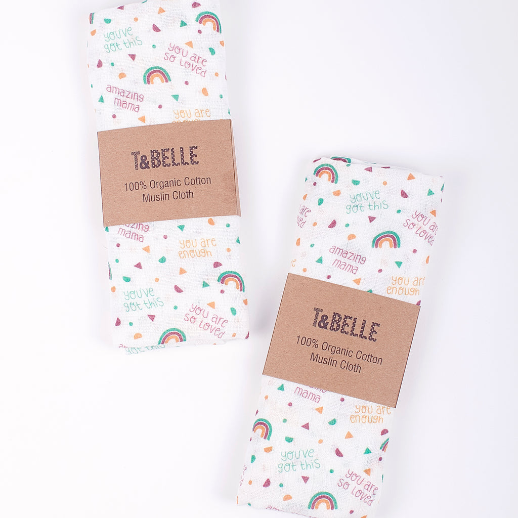 Remind yourself what an amazing mama you are every time you mop up a milky burp with my positive mum affirmations muslin squares. They are the perfect size for a burp cloth or bib - after all, you can never have too many muslins! Made from GOTS certified organic cotton, they are super soft and can be machine washed as often as necessary.