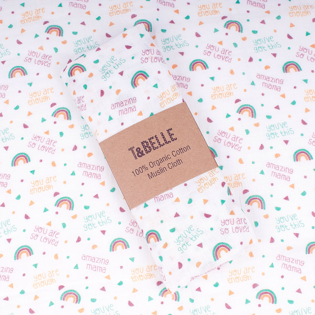 Positive Mum Affirmations Organic Cotton Muslin Square