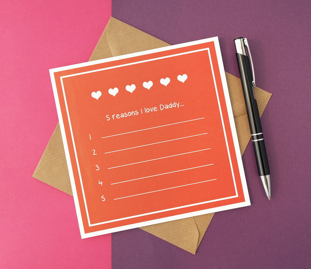 '5 reasons I love daddy' Card for Dad Birthday or Father's Day