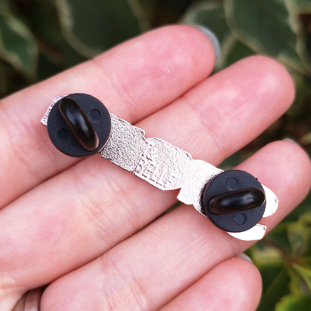 45mm wide Supermum pin with the T&Belle logo on the reverse
