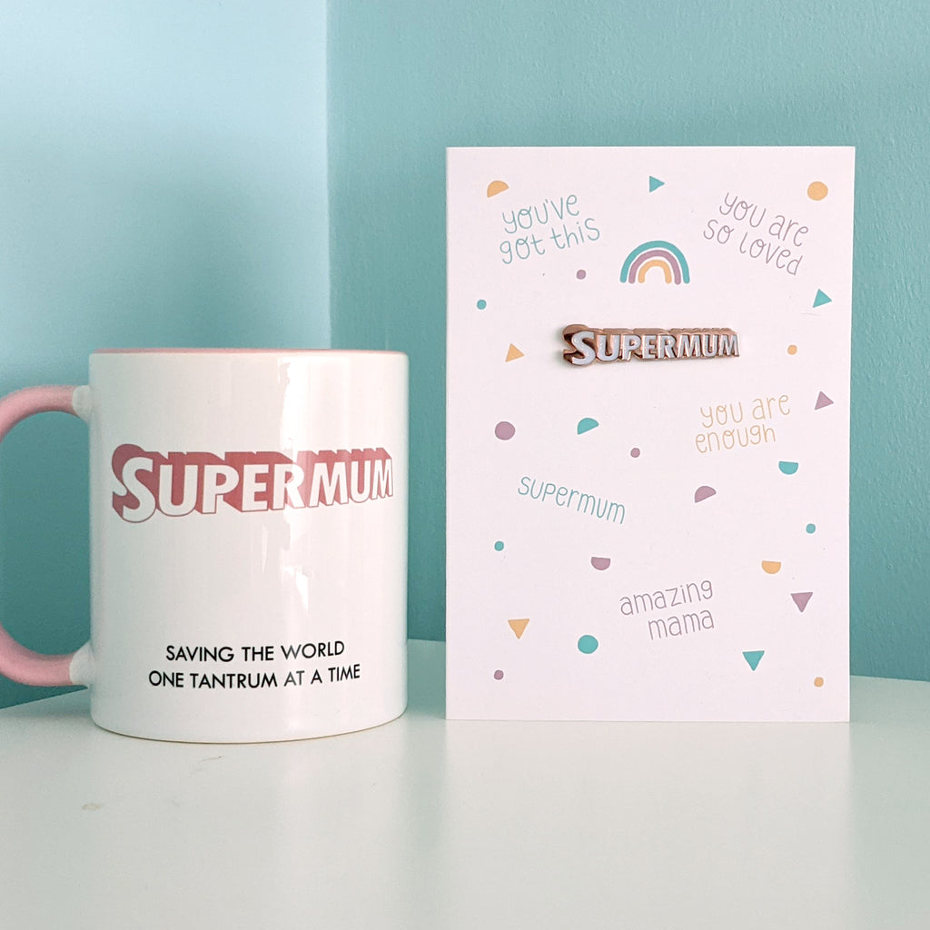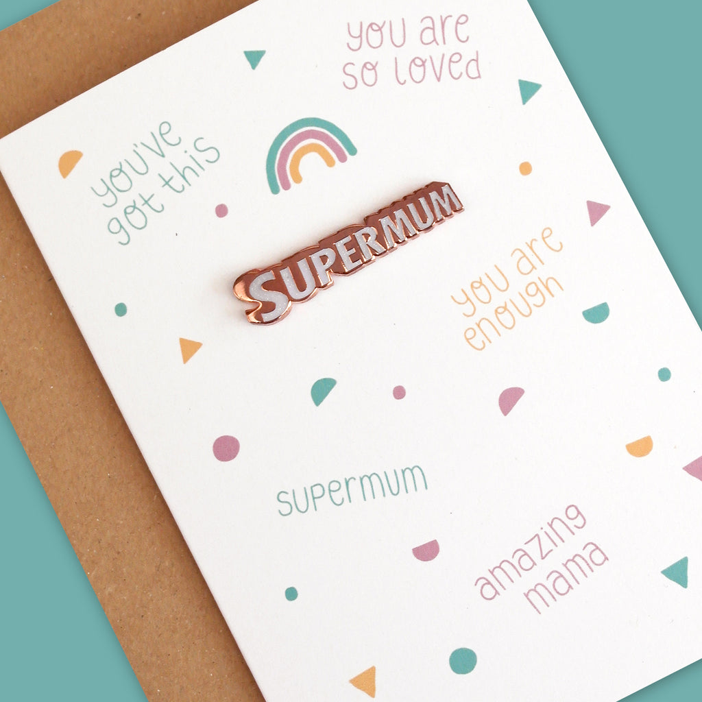 This recycled greetings card includes one of my rose gold Supermum pins that your recipient can wear with pride and let it raise them up on the days when they are feeling anything but super (yes, we all have those days!). I can also print or hand-write your message for you and send direct to your recipient - just mention this in the gift notes.