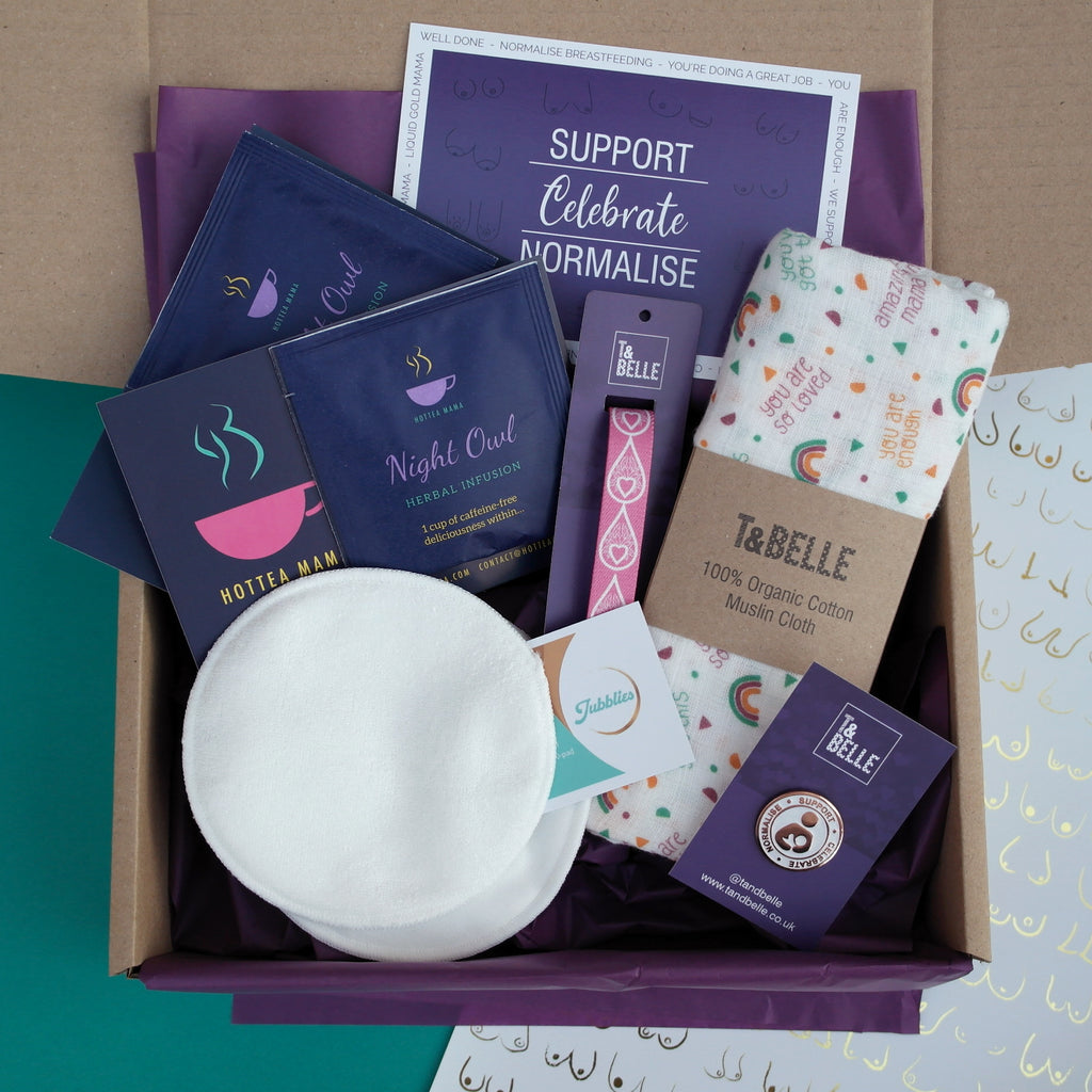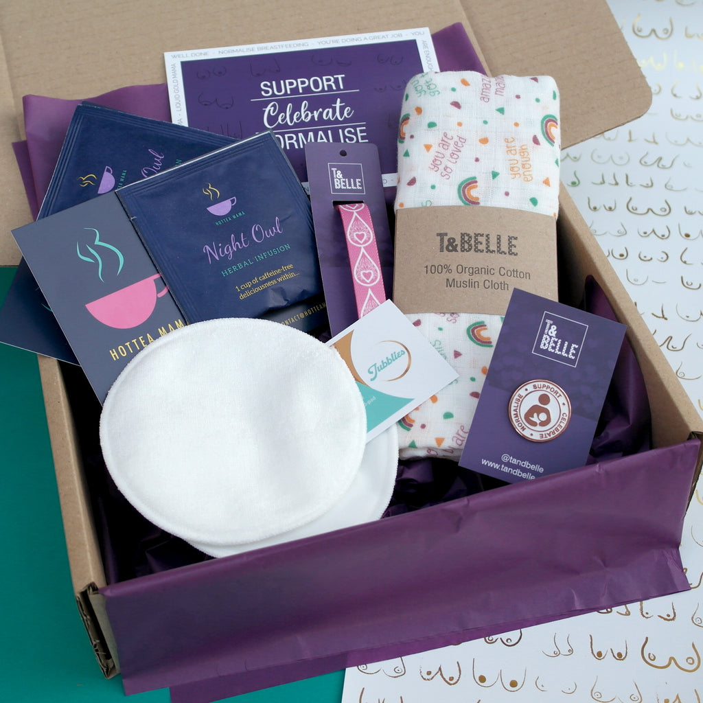 This box of gorgeous breastfeeding treats is the perfect gift for a breastfeeding mama to show that you are thinking of them or a wonderful treat for yourself (because you totally deserve it)! It includes some of my bestselling original T & Belle designs plus a curated items from some wonderful independent and ethical businesses.