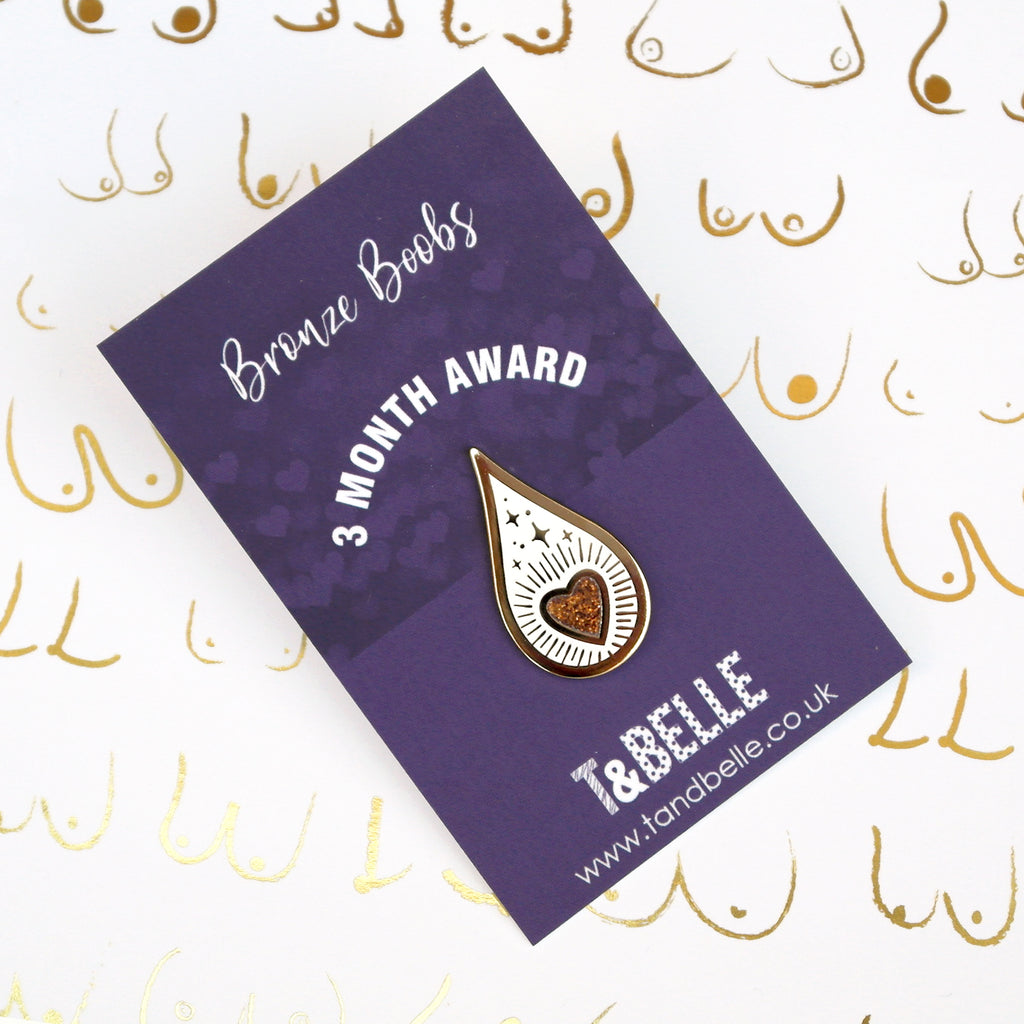 Drops of Magic Bronze milestone award keepsake pin badge - celebrating 3 months of breastfeeding, chestfeeding or pumping. For many parents, breastfeeding doesn't look quite as they'd imagined, maybe they are exclusively expressing, feeding using a SNS or a feeding tube. My new milestone design was created to be inclusive and celebrate the magic in every drop of human milk. Each pin is: