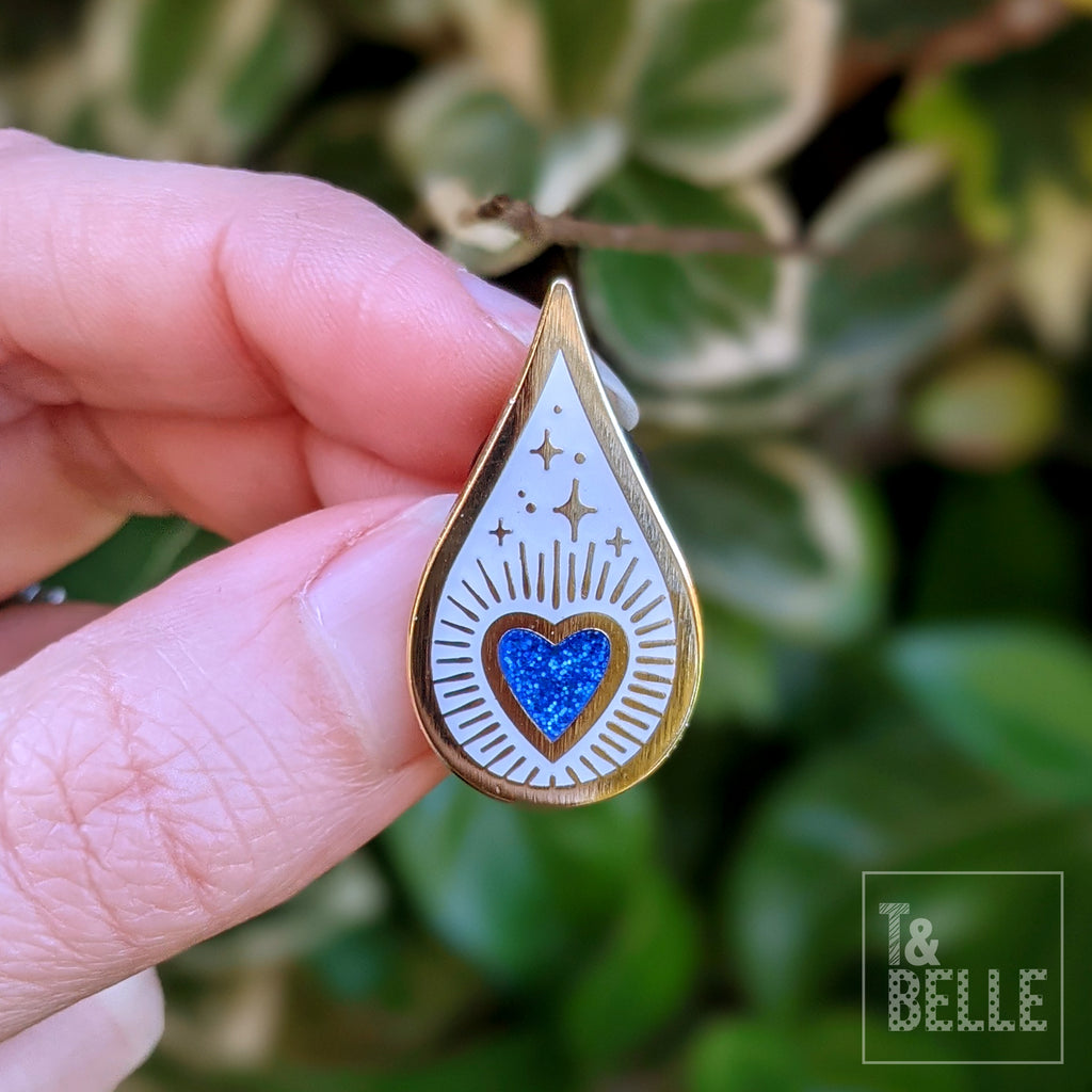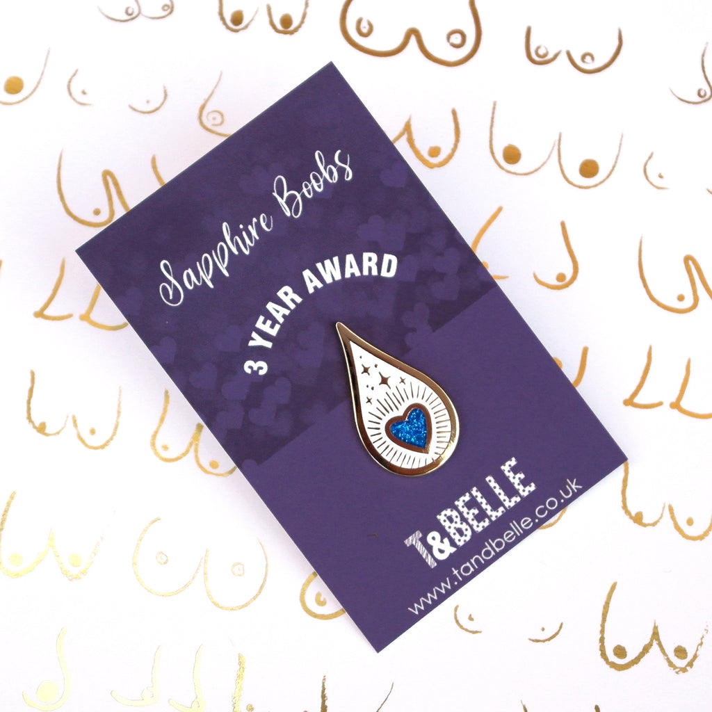 Drops of Magic Sapphire milestone award keepsake pin badge - celebrating 3 Years of breastfeeding, chestfeeding or pumping. For many parents, breastfeeding doesn't look quite as they'd imagined, maybe they are exclusively expressing, feeding using a SNS or a feeding tube. My new milestone design was created to be inclusive and celebrate the magic in every drop of human milk. Each pin is: