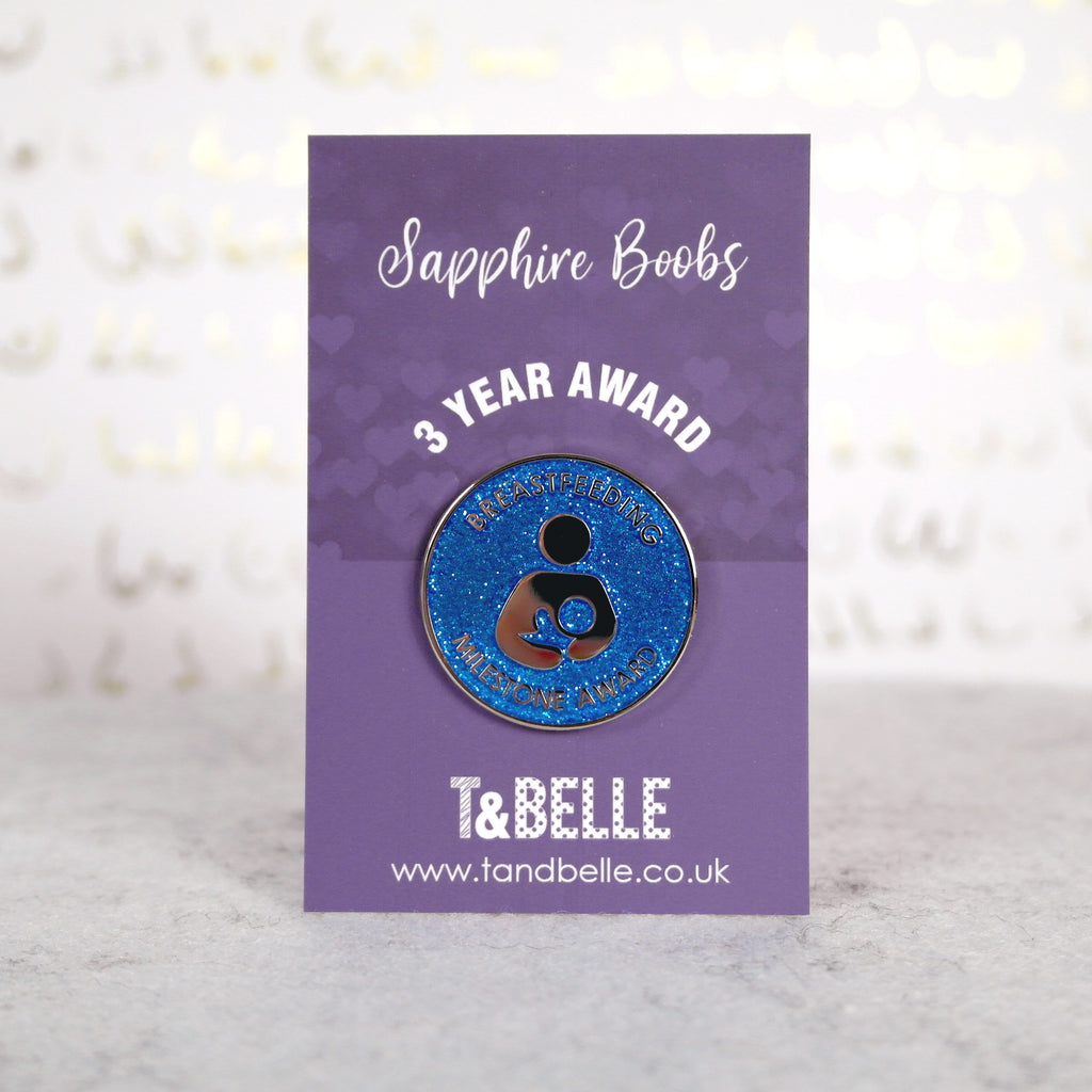Sapphire boobs - 3 Year Breastfeeding Milestone Award Pin