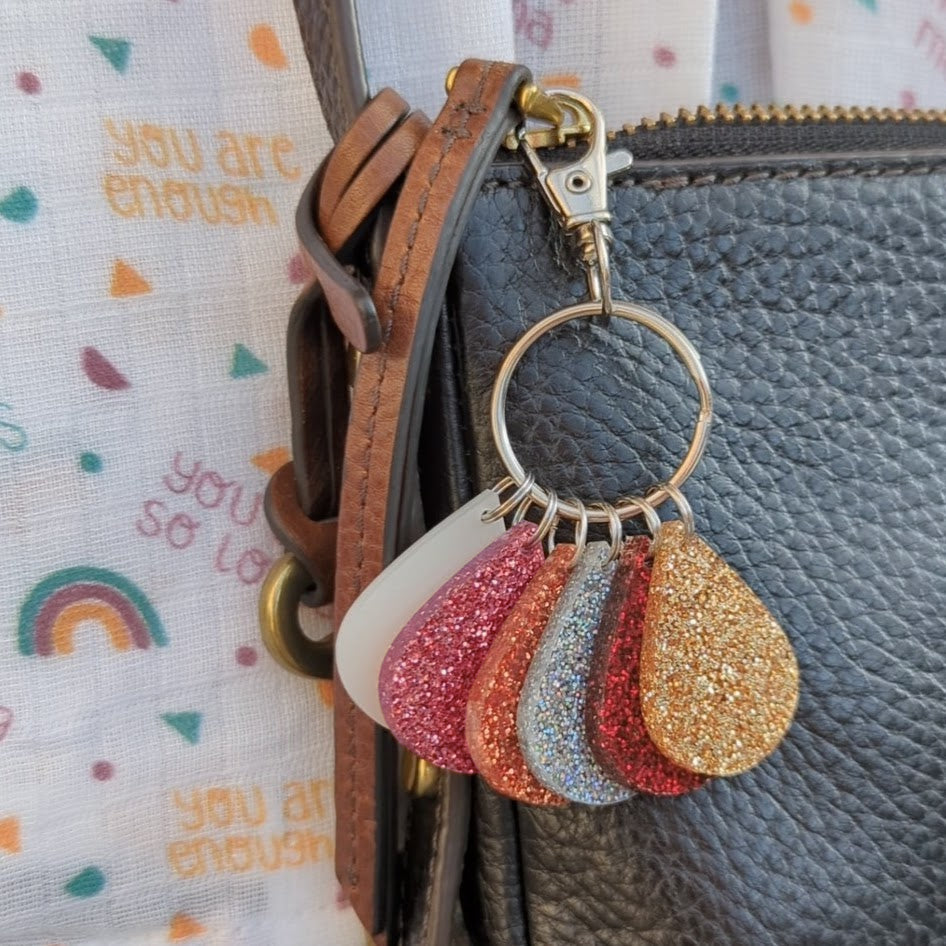 Celebrate your breastfeeding, chestfeeding or pumping journey with these beautiful printed celebration charms. These milk drop shaped keepsakes are the perfect way to celebrate tandem feeding your little ones and can also be added to your breastfeeding milestone keychain.