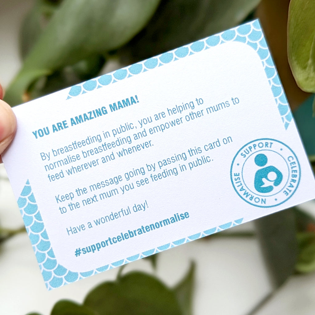 I designed these 'Thank you for breastfeeding in public' cards as a little token to hand to parents you see nursing their little ones whilst out and about - they are a lovely way to spread positivity around feeding in public and show your support for other breastfeeding mums. I remember being a new mum and feeling so nervous to breastfeed my baby when I was away from home, seeing other mums feeding in all sorts of different places really empowered me and gave me so much more confidence in those early days.