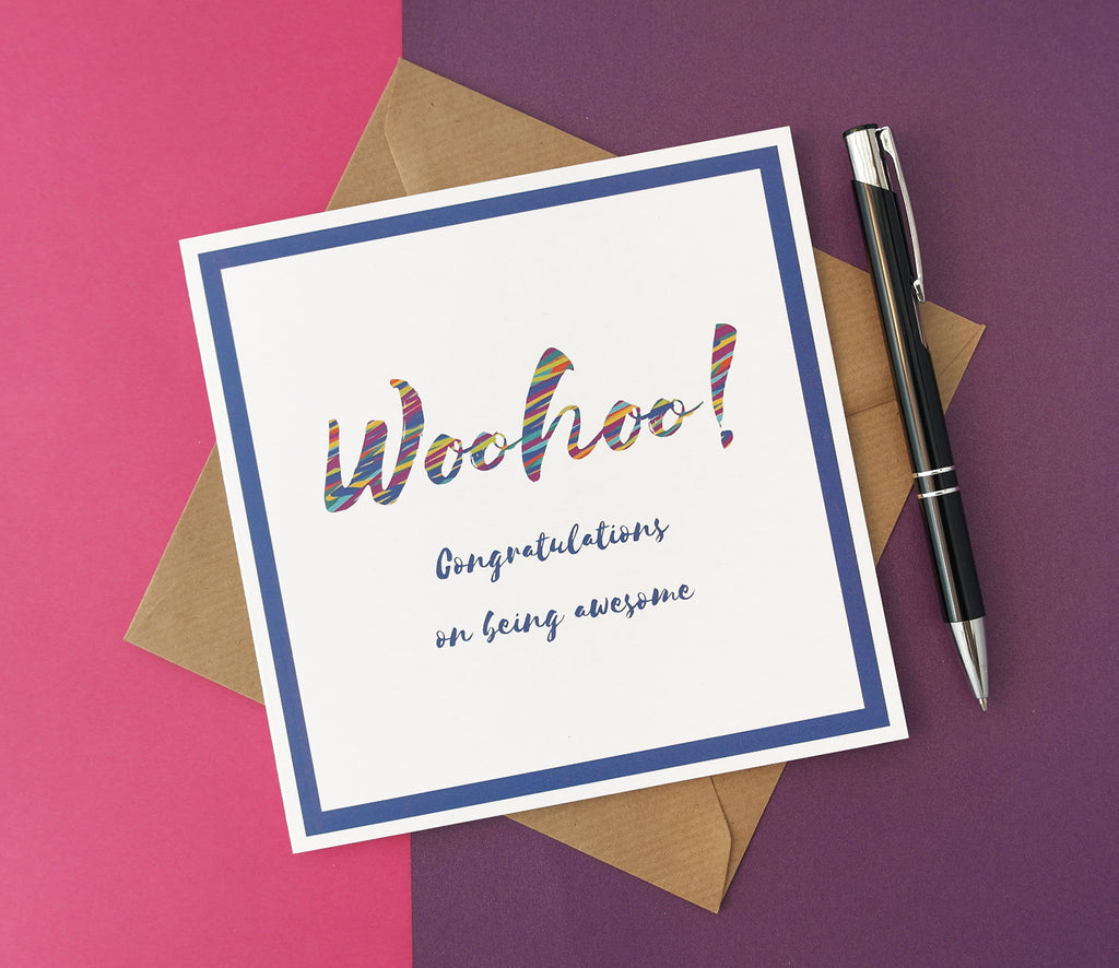 The perfect affirmative celebration card. Say well done, congratulations or just a bit 'woohoo' for all kinds of achievements, large or small.