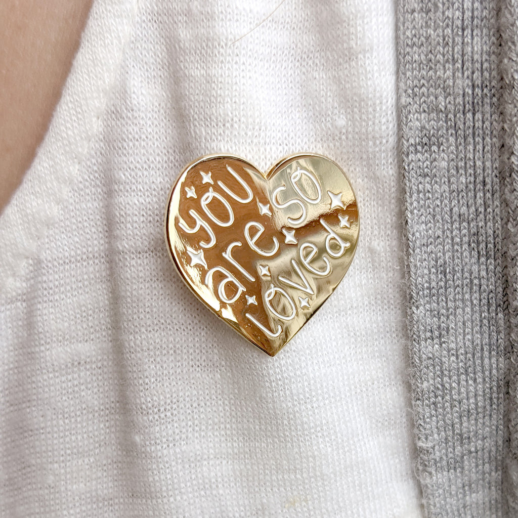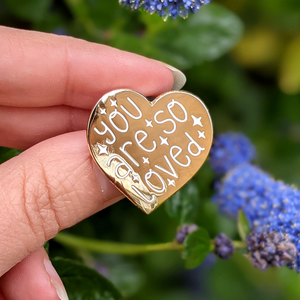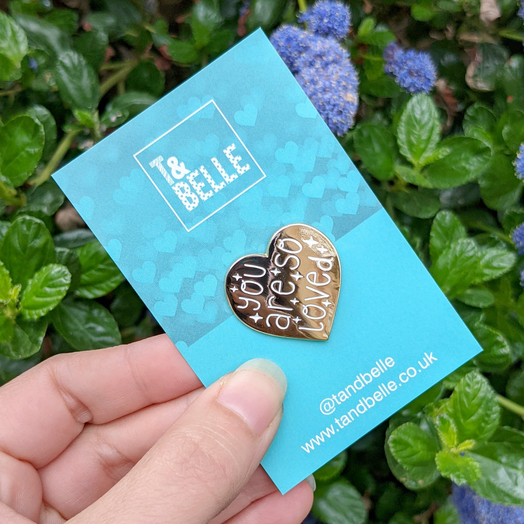 A little shiny golden reminder that you are so loved, pop this positive affirmation enamel pin on your jacket or bag and carry it with you to raise you up if your day is going less than perfectly. These badges also make a beautiful little gift to let your favourite people know how much they mean to you.