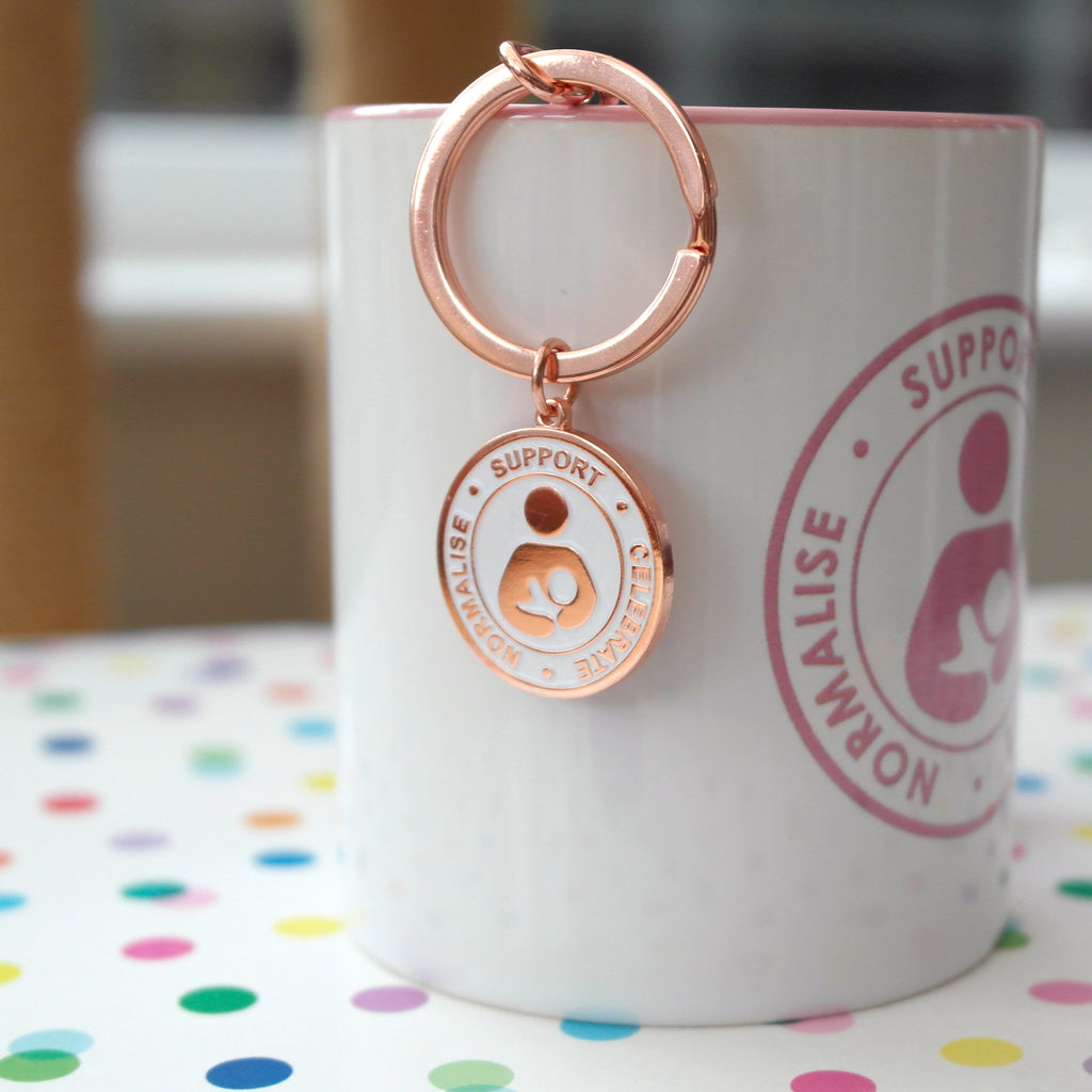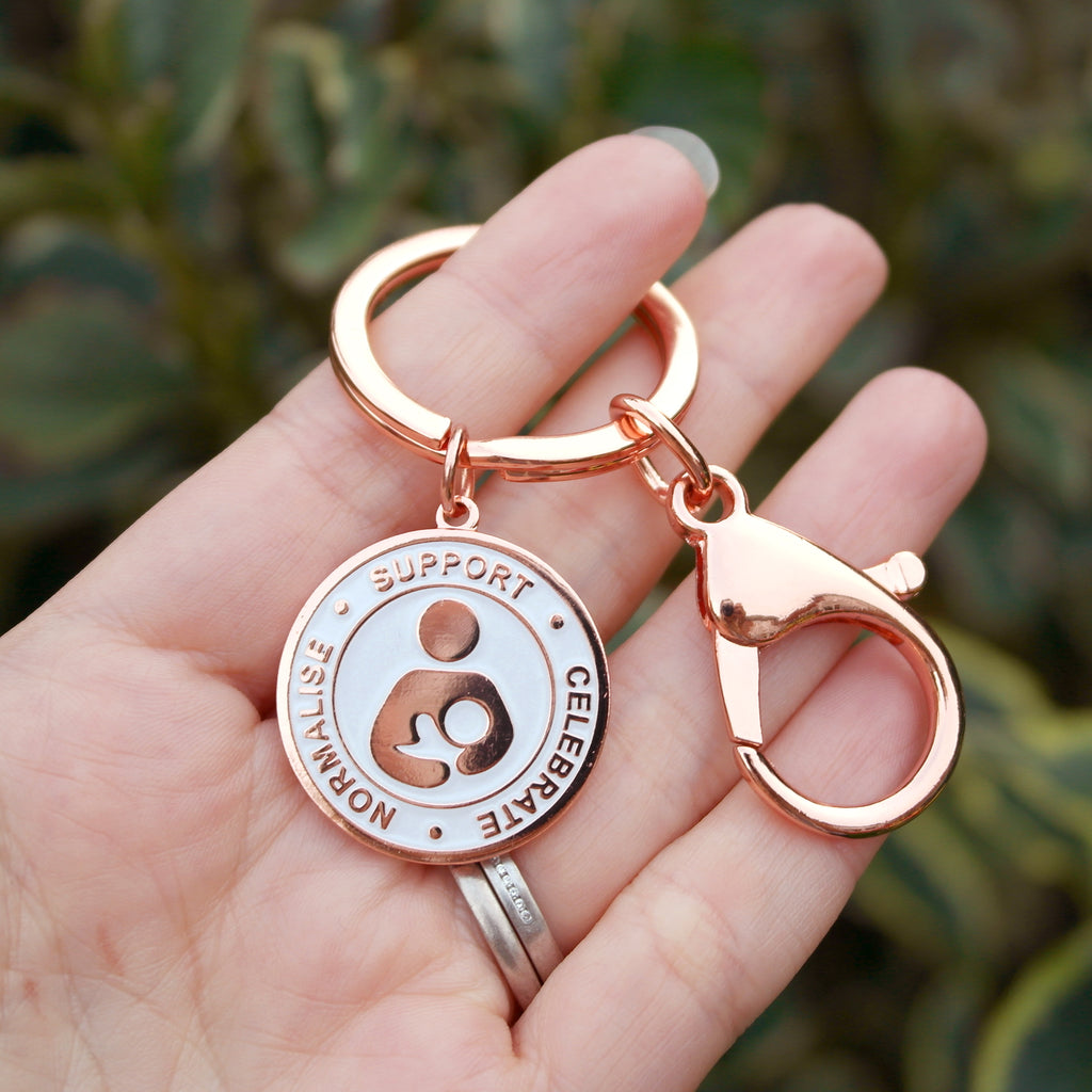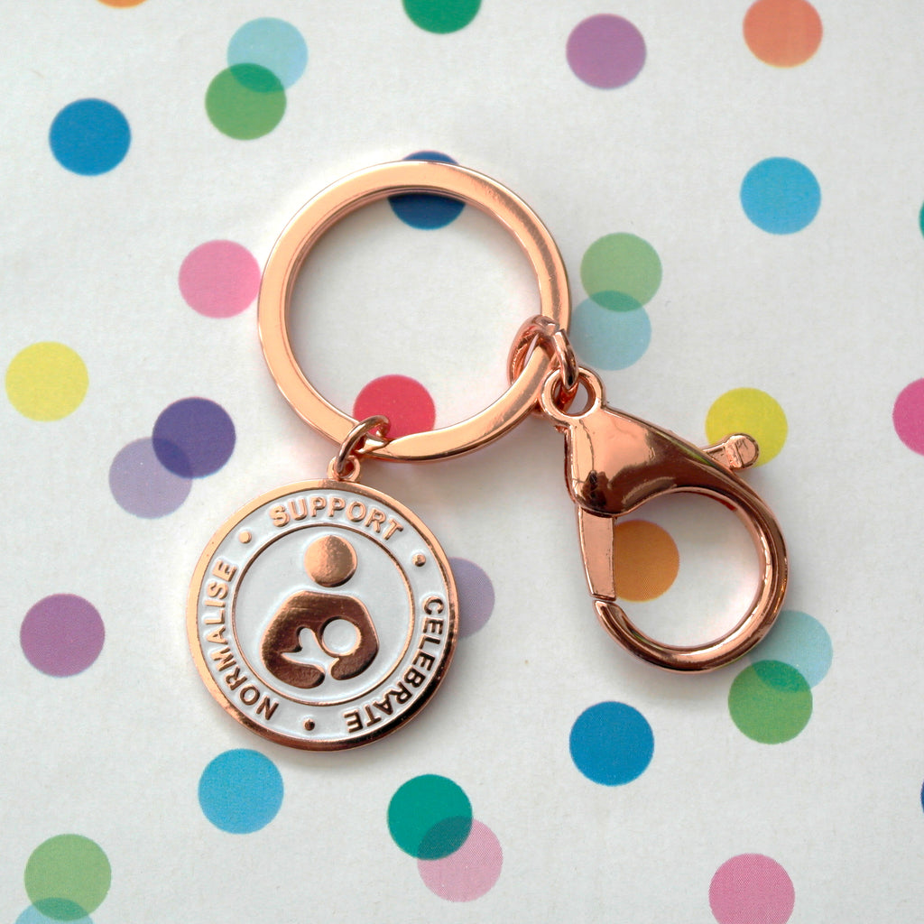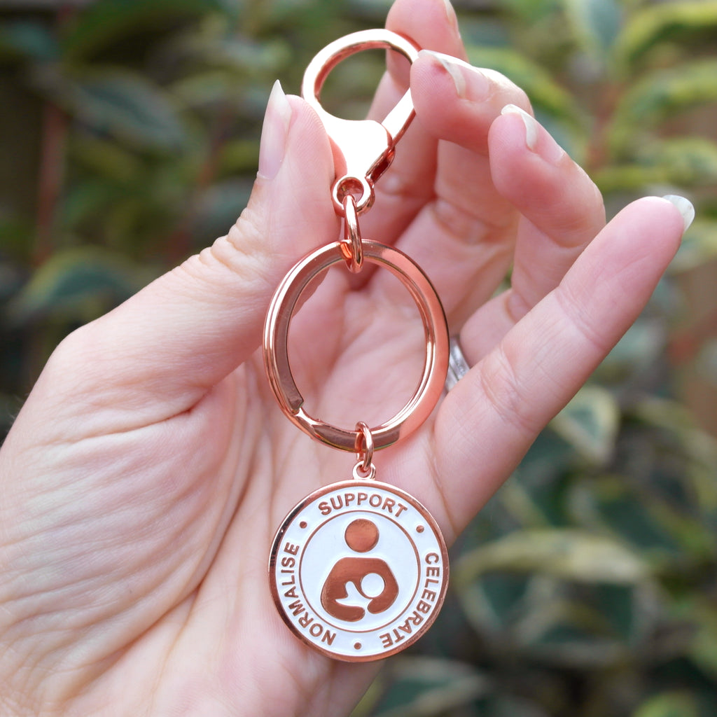 SECONDS Support Celebrate Normalise Breastfeeding Keyring - Rose Gold & Pearl