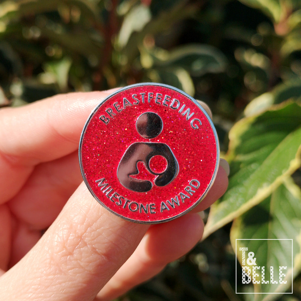 I created this range of pins so that boobing mummies everywhere can celebrate their amazing feeding milestones, from the first month of liquid gold and tiny baby snuggles, through the toddler years and beyond. You are all absolute hero mamas and deserve a medal... or a pin! I centred my feeding award pin designs around the international breastfeeding symbol as this is instantly recognisable as a boobing emblem.