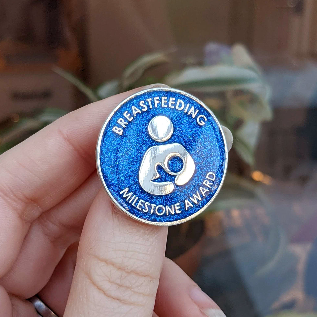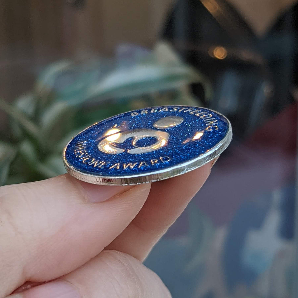 SECONDS - SHINY COATING Sapphire boobs - 3 Year Breastfeeding Milestone Award Pin