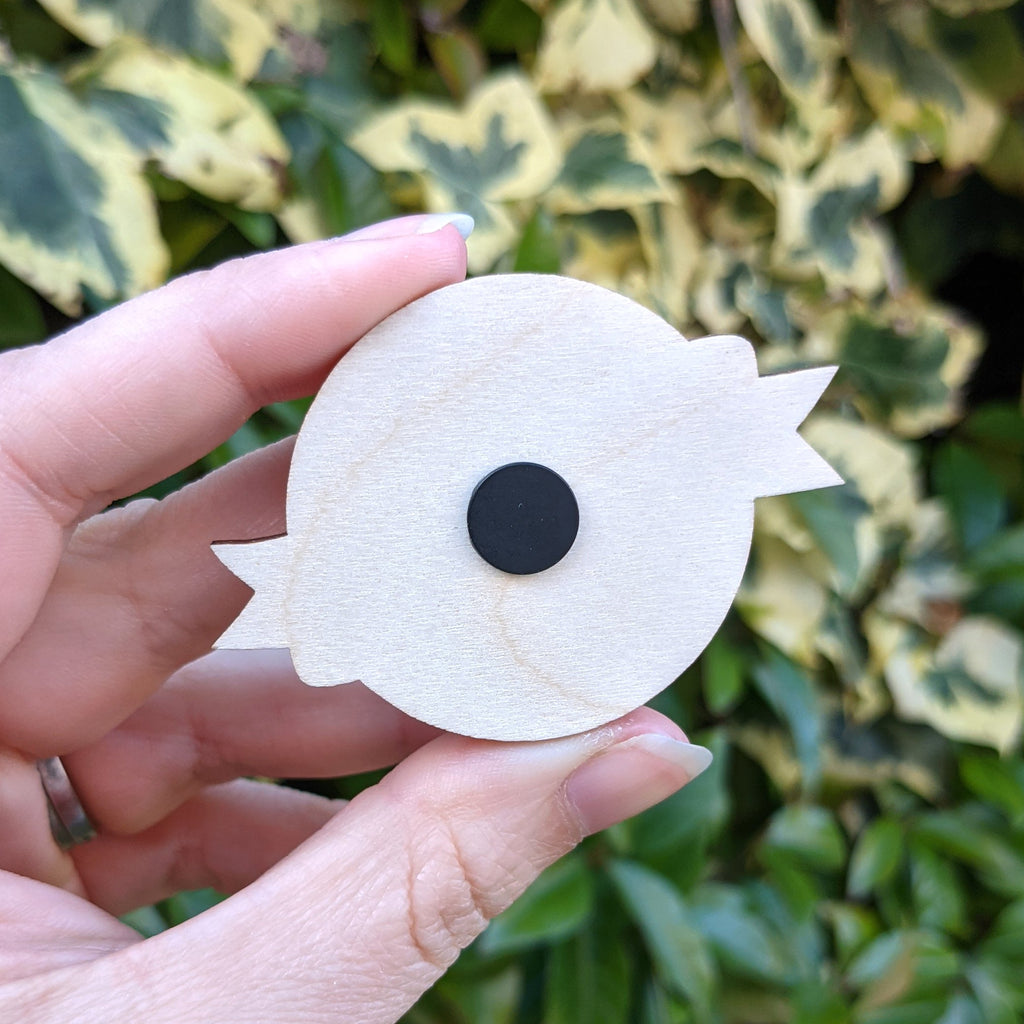 This wooden magnet is the perfect way to brighten up your fridge or other metal surface, it is attached to the backing card using a little metal disc so there is no sticky residue to remove either!