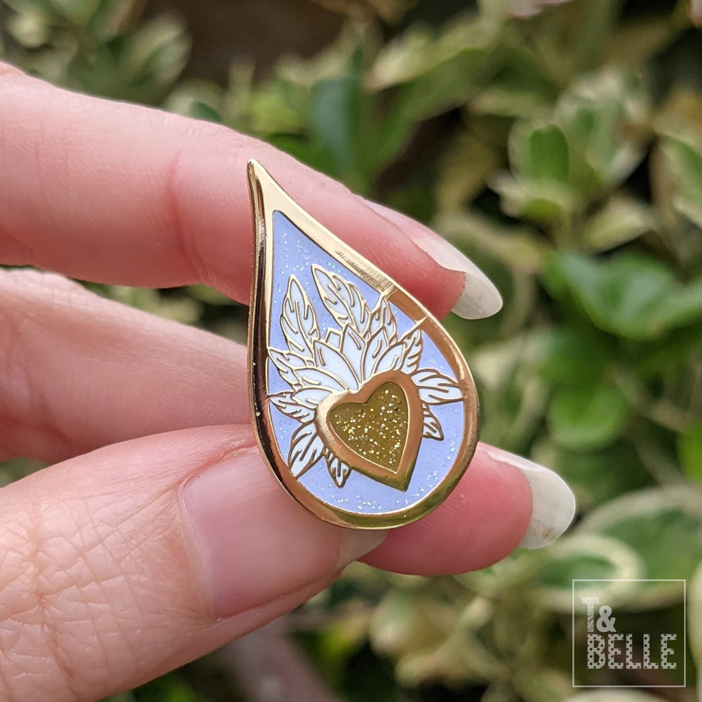 Liquid Gold, Liquid Growth, Liquid Love - I designed this pin to represent the love and nurture of breastfeeding and to symbolise the early colostrum feeds, often known as liquid gold. It is perfect for a new mama to celebrate those first few feeds, or as a keepsake to celebrate your amazing breastfeeding journey whether you fed for a few days, a few months or a few years.